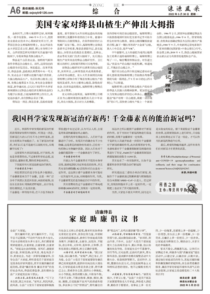 美国专家对绛县山楂生产伸出大拇指