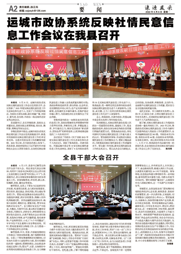 运城市政协系统反映社情民意信息工作会议在我县召开
