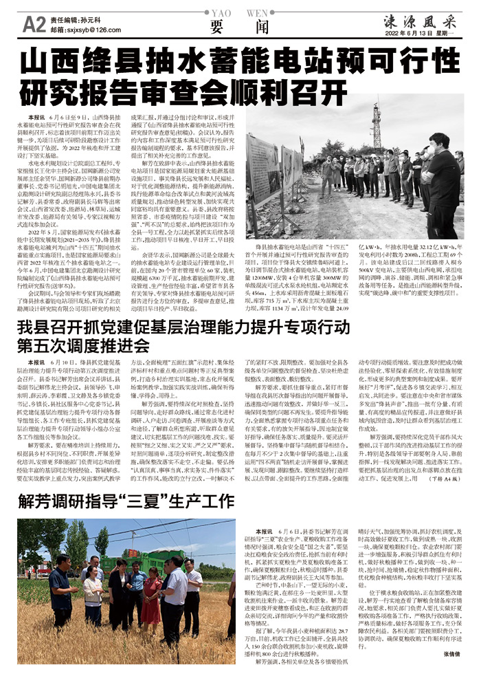 山西绛县抽水蓄能电站预可行性研究报告审查会顺利召开