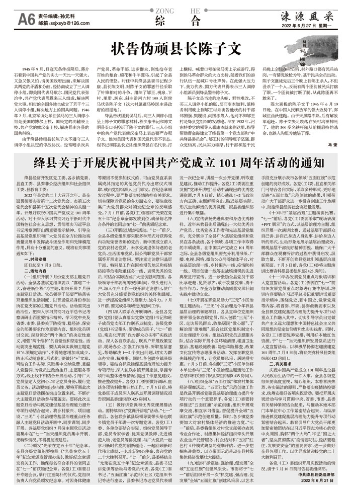 绛县关于开展庆祝中国共产党成立101周年活动的通知