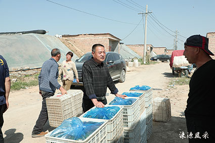 2017年6月,蔡亚旭牵头实施的蔬菜大棚项目正式落地,基地共有17个蔬菜大棚,每座大棚实用面积1.8亩,主要种植黄瓜、西红柿、茄子等蔬菜,“现在正是销售的好时候。”蔡亚旭说道。基地中的蔬菜大棚全部采用半地下室建造,在有效阻止外界寒冷天气侵蚀的同时,又增强了大棚的保温作用。“一年收益10万元左右,头一年大家就都把贷款还清了。”蔡亚旭非常高兴,“2021年我们还新建了一个3.7亩的草莓大棚,收益特别好。”如今,依托蔬菜大棚基地,北步康村成立了碧海青天蔬菜种植专业合作社,集体经济做得有声有色,“产业兴旺了,村民富裕了,这就是我最大的快乐。”这是蔡亚旭在乡村振兴道路上孜孜不倦的动力所在。