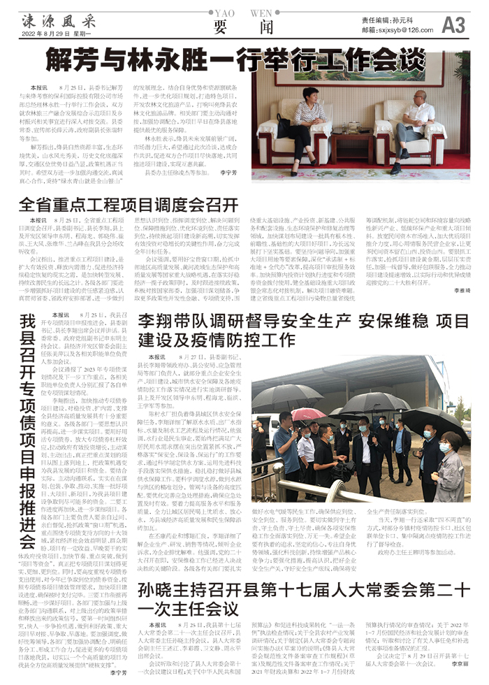 李翔带队调研督导安全生产 安保维稳 项目建设及疫情防控工作