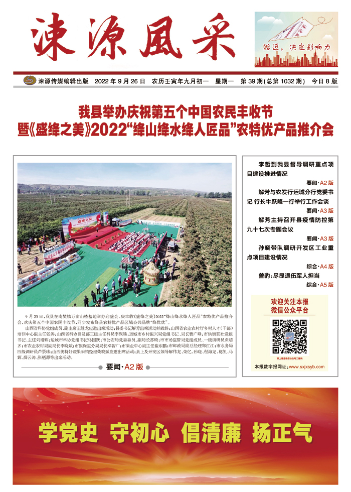 我县举办庆祝第五个中国农民丰收节暨《盛绛之美》2022“绛山绛水绛人匠品”农特优产品推介会