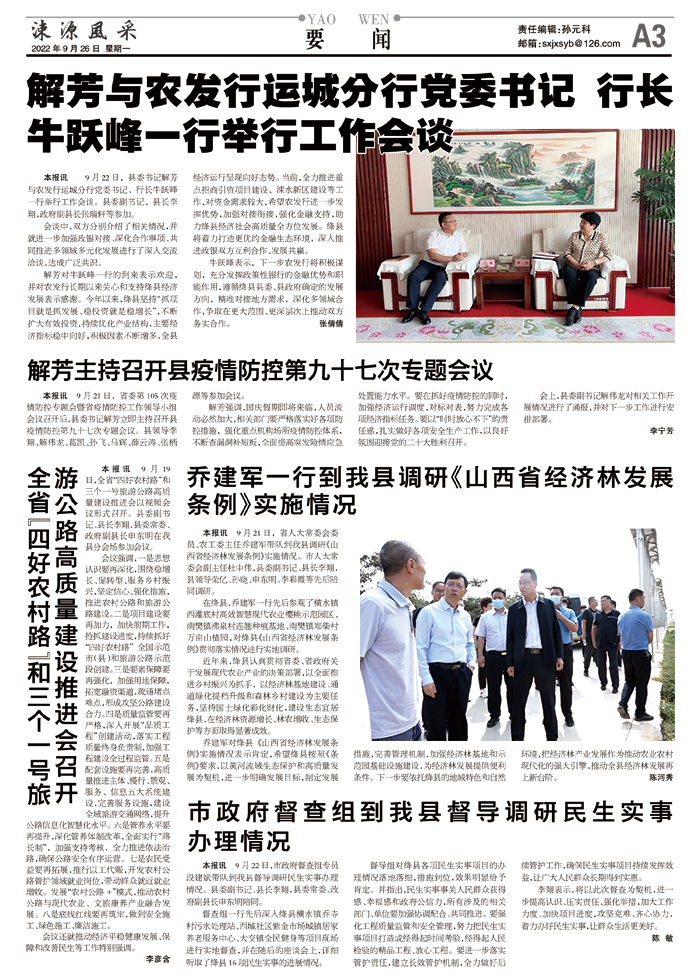 解芳与农发行运城分行党委书记 行长牛跃峰一行举行工作会谈