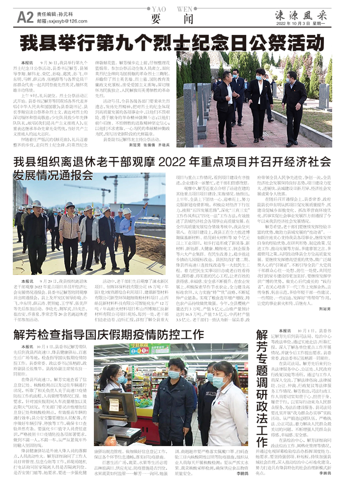 解芳检查指导国庆假期疫情防控工作