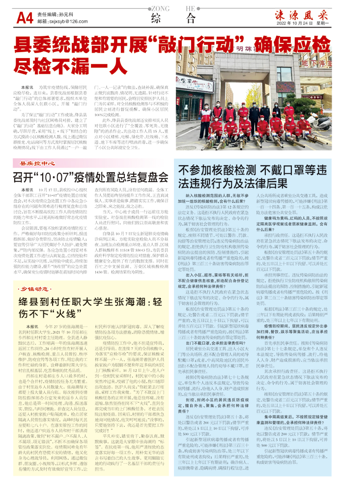 不参加核酸检测 不戴口罩等违法违规行为及法律后果