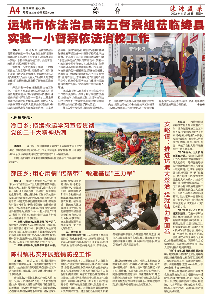 运城市依法治县第五督察组莅临绛县实验一小督察依法治校工作
