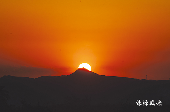 黎明时分,正当繁星隐退,人们酣睡之际,更加辉煌的胜景已悄然降临。此时此刻,天山空阔,青碧相映;天连远山,峰接遥天。高低天山无间,上下青碧分明。须臾间,东方天山相接处便开始发生神奇的变化。先是出现了灰蒙蒙的云雾,云雾慢慢由灰变白,由白变成鹅黄。最后变成了绚丽的五色云霞。就在这时,太阳从云霞后边升起来了,形状由镰刀形逐渐变为圆盘形,颜色由金黄、桔黄逐渐变为桃红、血红、朱红,越来越明亮,越来越鲜艳,这时的太阳虽然不断变化,但却丝毫不刺眼,任凭你尽情地欣赏观看,它会使您忘却一切,陶醉在无比的幸福之中。如果你要拍摄,就抓住时机,留住这绚丽的镜头。霎时,那鲜艳欲滴的红日便撩去纱巾,露出白里透红的面庞,含情脉脉地流泻出柔和迷人的光彩。