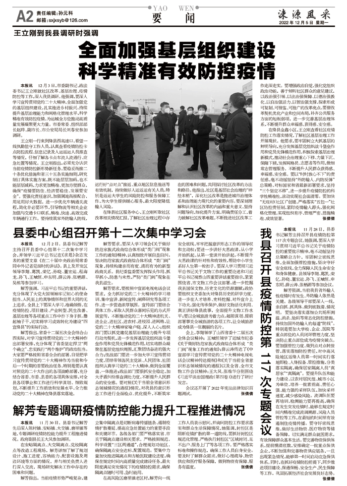 王立刚到我县调研时强调:全面加强基层组织建设 科学精准有效防控疫情