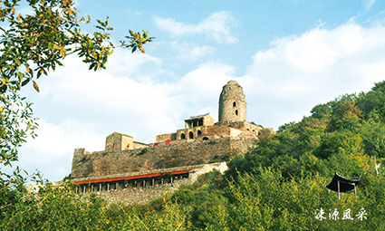 在翠柏花丛的山顶上,掩映着鼓乐沉沉、香烟袅袅的重重庙宇。什么菩萨庙、娘娘庙、药王庙、文昌庙……竟达12处之多。庙内的壁画古香古色,异采纷呈。菩萨合拱双手,正襟危坐;财神眉目疏朗,体态文静;药王端庄肃穆,坚毅沉潜;罗汉形象古朴,姿态各异。一个个神塑惟妙惟肖,栩栩如生。混元楼(也称老君楼)石塔是山顶独树一帜的主体建筑,楼高30余米,全部采用大青石砌起,嵌缝严实,耸入碧云。日出前登上楼顶举目远眺,南抵黄河边,北及太子滩,总览九州十二县,令人心旷神怡。庙院内南侧石壁下有一奇观——石上清泉,名曰神水泉。此泉水由石缝中渗出,传说可祛除百病,延年益寿,这是实践的总结,还是美好的希冀?不得而知,不过泉水天旱不沽,天涝不溢,取之不尽,用之不竭,则是真的。