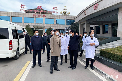 在四厂亚定点救治医院和健康医院,解芳详细了解两所医院运行管理、发热病房床位、医疗设备和诊疗能力储备、患者收治诊疗能力等情况。