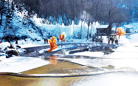 绛北大峡谷位于磨里镇小北山,处于中条山腹地,是晋南地区冬日里规模最大的冰川大世界。冰瀑如同绚丽的条条锦缎挂在半山腰。依山崖而悬挂的冰挂晶莹剔透、造型各异,垂悬在岩石上,有的如无瑕白玉,嵌在河岸旁,形成冬季独特的迷人景色,仿佛进入了童话般的世界里,吸引了众多游客前来驻足观赏留影。