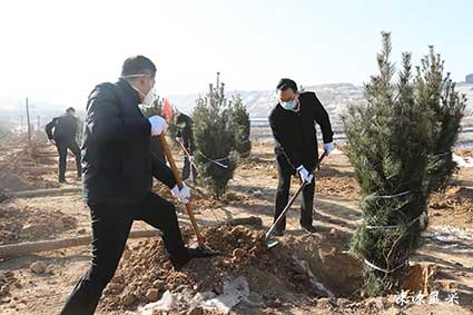 此次义务植树活动积极践行“绿水青山就是金山银山”理念,响应市委、市政府“上班先上山,栽树添新绿”号召,共划分为AB两大区域、18个小区同步开展。活动现场,解芳等县四大班子领导与党员干部按照分工区域和植树任务,相互配合、扶正树木、挥锹铲土、回填入坑、培实土层,提桶浇水,每一道工序都井井有条、精益求精,合力栽下一棵棵树苗。经过大家一番热火朝天的劳动,共栽植白皮松、五角枫、国槐2000余株,一排排树苗错落有致、迎风挺立,把荒芜的山坡装点得生机盎然。
