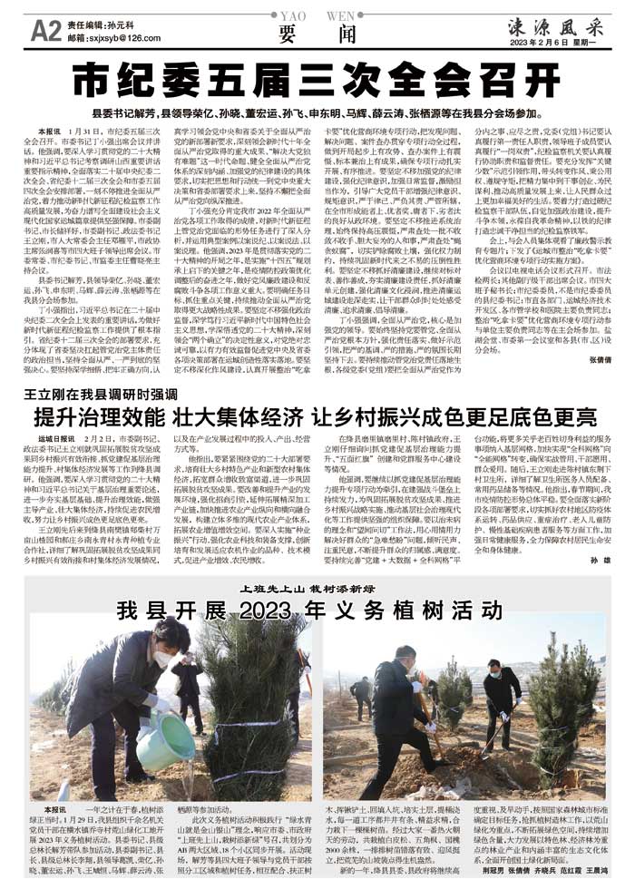 新的一年,绛县县委、县政府将继续高度重视、及早动手,按照国家森林城市标准确定目标任务,抢抓植树造林工作,以荒山绿化为重点,不断拓展绿色空间,持续增加绿色含量,大力发展以特色林、经济林为重点的林业产业和内涵丰富的生态文化体系,全面开创国土绿化新局面。