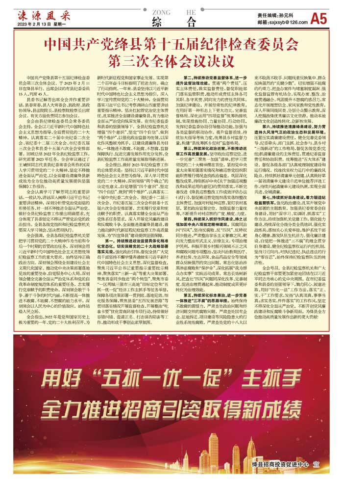 中国共产党绛县第十五届纪律检查委员会第三次全体会议决议