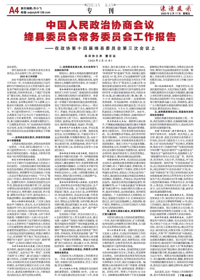 中国人民政治协商会议绛县委员会常务委员会工作报告