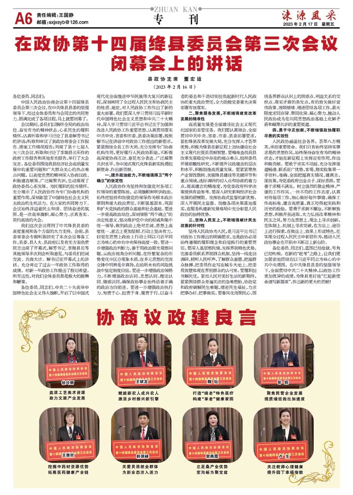 在政协第十四届绛县委员会第三次会议闭幕会上的讲话