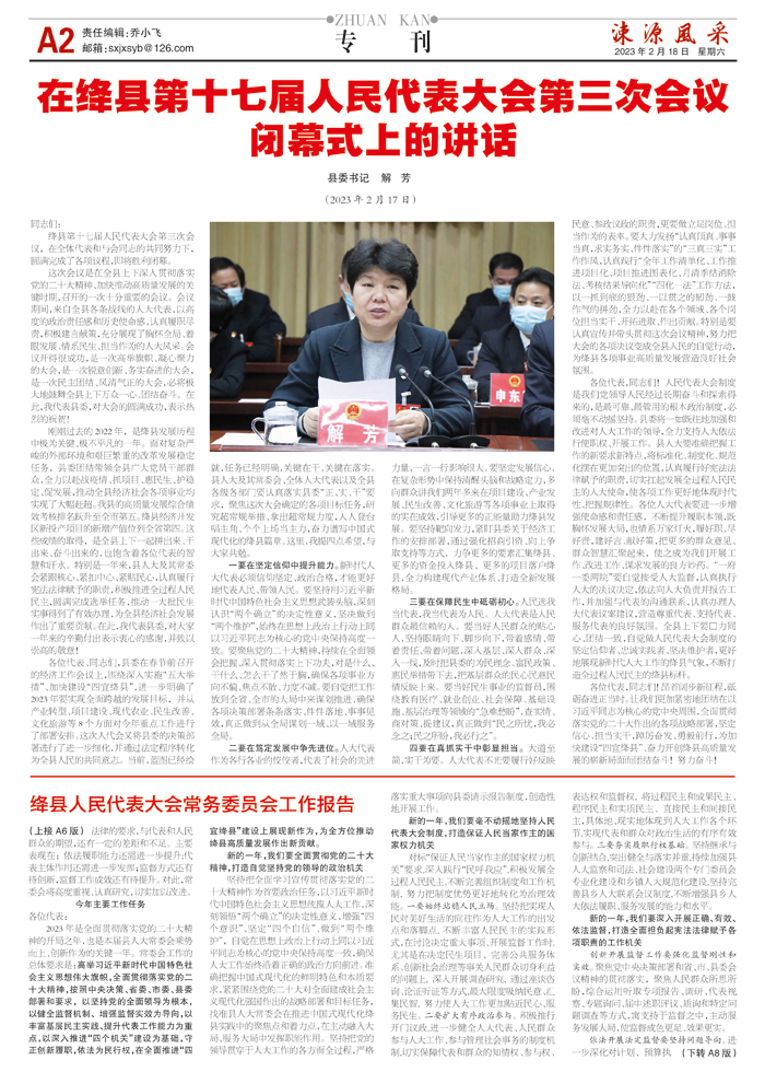 在绛县第十七届人民代表大会第三次会议闭幕式上的讲话