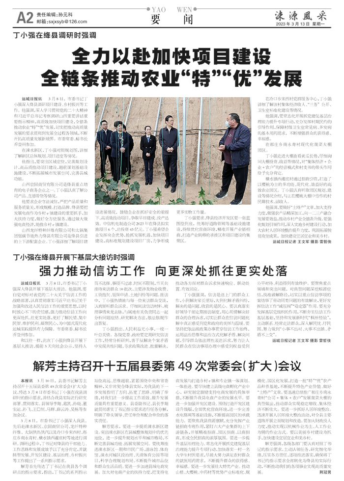 丁小强在绛县调研时强调:全力以赴加快项目建设 全链条推动农业“特”“优”发展