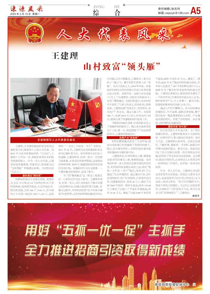 王建理,大交镇续鲁峪村党支部书记兼村委主任,绛县第十七届人大代表。自2011年当选为续鲁峪村的“父母官”,王建理十几年如一日,奔跑在带领乡亲们脱贫致富的路上。作为一名人大代表,王建理更是带着感情、带着责任,围绕群众的“急难愁盼”积极建言献策,当好群众的“代言人”。
