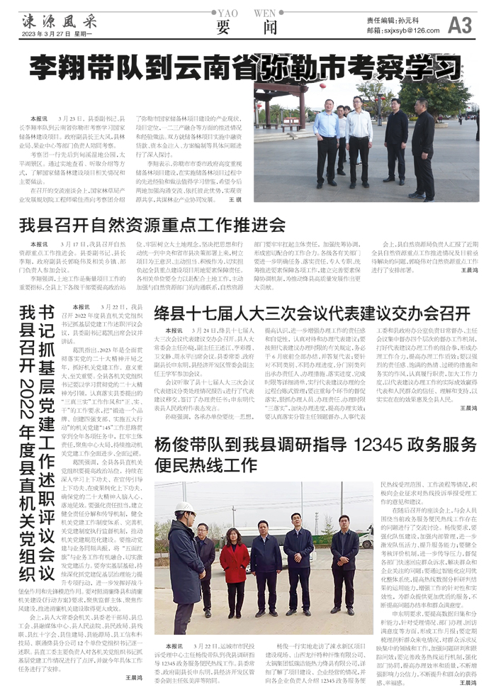 本报讯 3月23日,县委副书记、县长李翔率队到云南省弥勒市考察学习国家储备林建设项目。政府副县长王大风,县林业局、果业中心等部门负责人陪同考察。