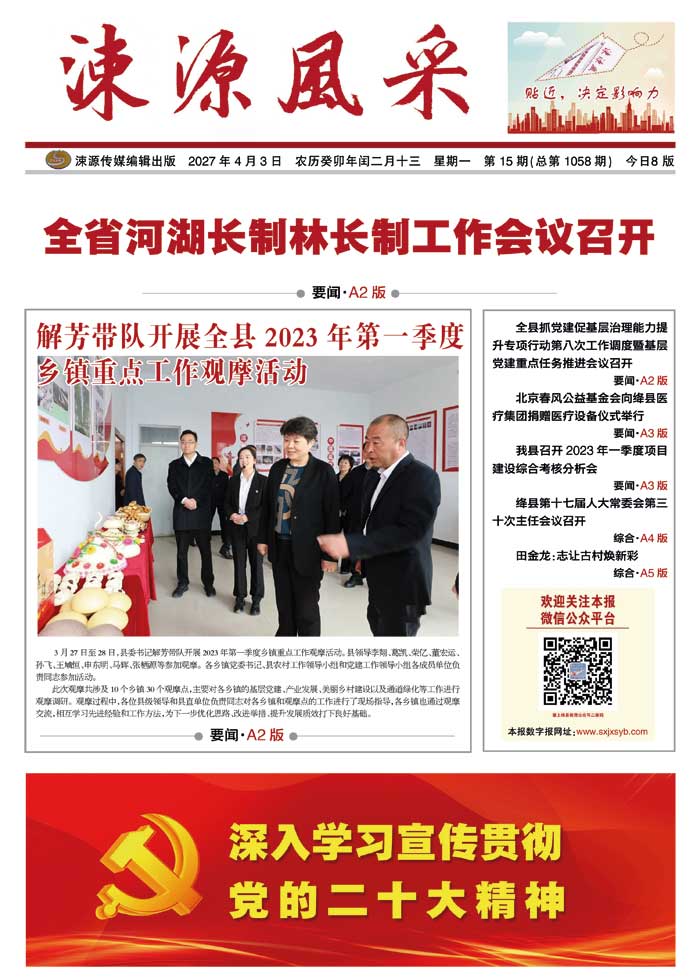 《涑源风采》贴近,决定影响力 涑源传媒编辑出版 微信:suyuanfengcai 邮箱:sxjxsyb@126.com 电话:6523423