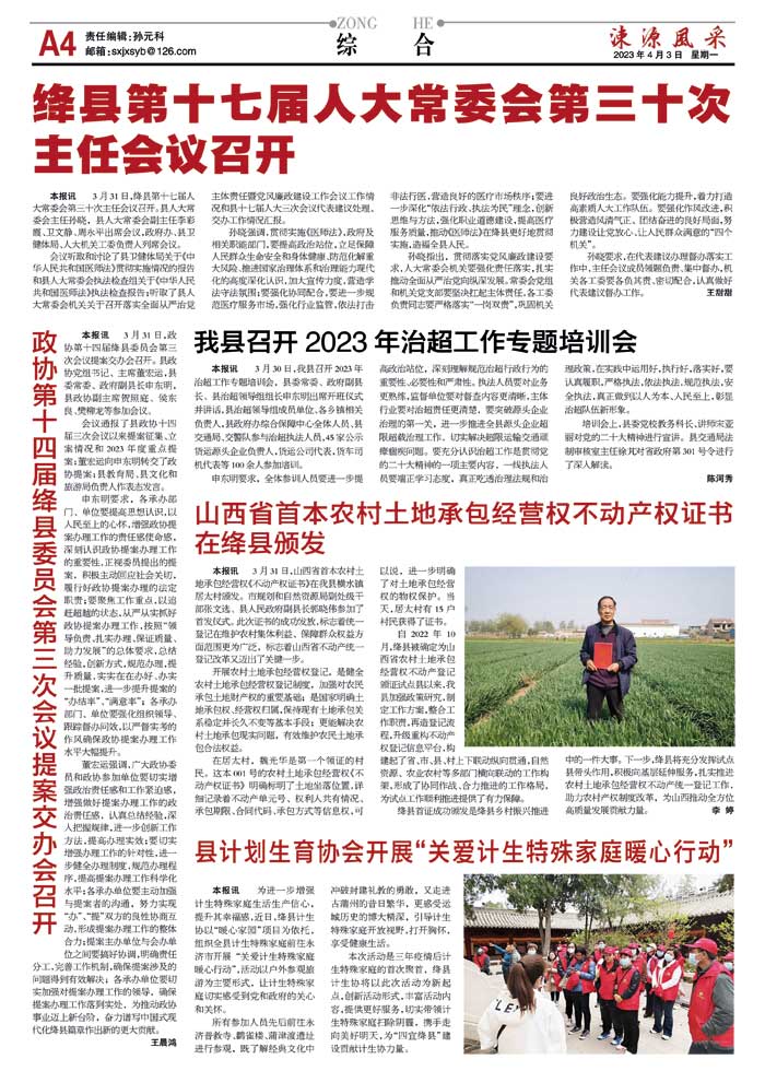 本报讯 3月31日,绛县第十七届人大常委会第三十次主任会议召开。县人大常委会主任孙晓,县人大常委会副主任李彩霞、卫文静、周永平出席会议,政府办、县卫健体局、人大机关工委负责人列席会议。
