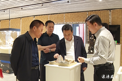 申东明一行实地参观了瑞来石艺“金钱石雕”工艺品陈列厅。上百个金钱石雕工艺品融诗语于灵石,赋华章于匠心,构思新奇,造型逼真,让人赞叹不已。省级工艺非遗传承人韩瑞来详细介绍了瑞来石艺的设计理念和工艺技术,带领大家参观了设计车间,打磨车间,并汇报了近期展品的获奖情况和今年瑞来石艺的工作打算。申东明表示:瑞来石艺的每个作品都承载着一段历史,也代表着韩瑞来大师的一份心血,希望瑞来石艺能够不忘初心,更好的扮演绛县本土文化的弘扬者和传播者。