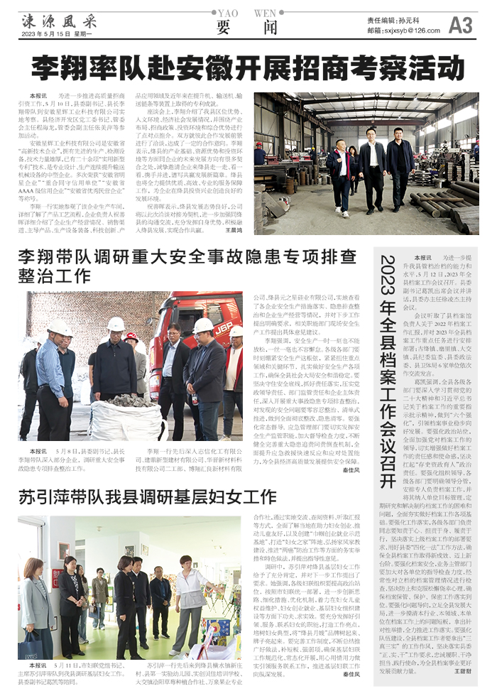 李翔带队调研重大安全事故隐患专项排查整治工作