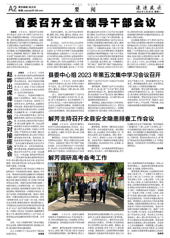 本报讯 5月23日,市委常委、组织部部长赵晔出席绛县政银企对接座谈会并讲话。县委书记解芳主持座谈会。部分市直单位和银行机构负责同志,县党政班子成员,县人大、政协、开发区主要负责同志,以及县直相关单位负责同志、企业代表参加座谈。