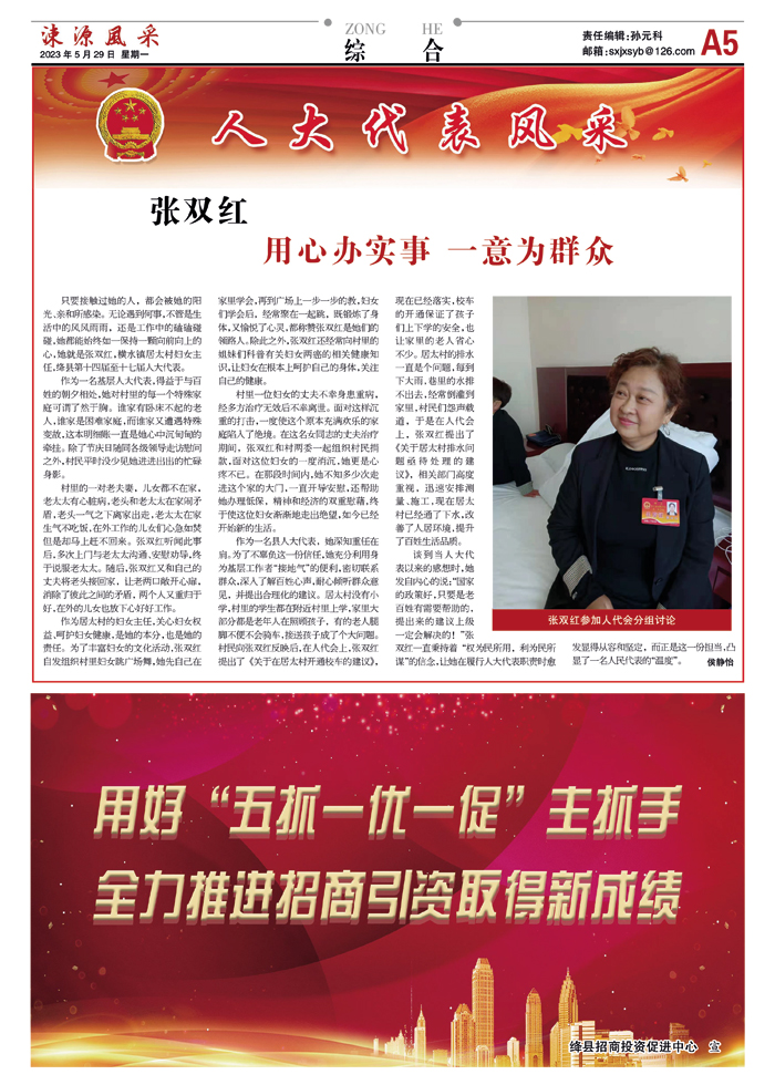 谈到当人大代表以来的感想时,她发自内心的说:“国家的政策好,只要是老百姓有需要帮助的,提出来的建议上级一定会解决的!”张双红一直秉持着“权为民所用,利为民所谋”的信念,让她在履行人大代表职责时愈发显得从容和坚定,而正是这一份担当,凸显了一名人民代表的“温度”。