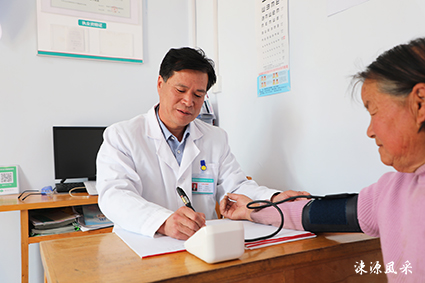 “大妈,最近感觉身体有哪里不舒服吗?来,我帮你量一下血压。”只见崔秉杰熟练地使用血压计、听诊器帮助困难群众检查身体。这样的场景在东牛坞村的贫困户家中时常上演。今年是崔秉杰坚守在乡村医生岗位上的第17年。他从小受父亲的影响,选择了从医,毕业后回到农村继承父亲的岗位,成了东牛坞村的一名乡村医生。乡村医生的工作繁琐而艰巨,除了在卫生室接诊,老年人体检、慢性病随访、孕产妇保健等也是崔秉杰的日常工作。东牛坞卫生室每天来就诊的病人比较多,为方便群众就诊,不管什么时候、什么样的病人,只要找到他,他都热情细心地为病人诊疗服务。村里五保户张大爷无儿无女,孤身一人,身体还不好,他把老人当作自己的亲人对待,定时上门诊断,精心治疗。为确保村里老弱病残人群能够达到疾病早发现早治疗,他经常联系上级医疗单位来村里为村民进行免费体检服务,得到村民们的交口称赞。
