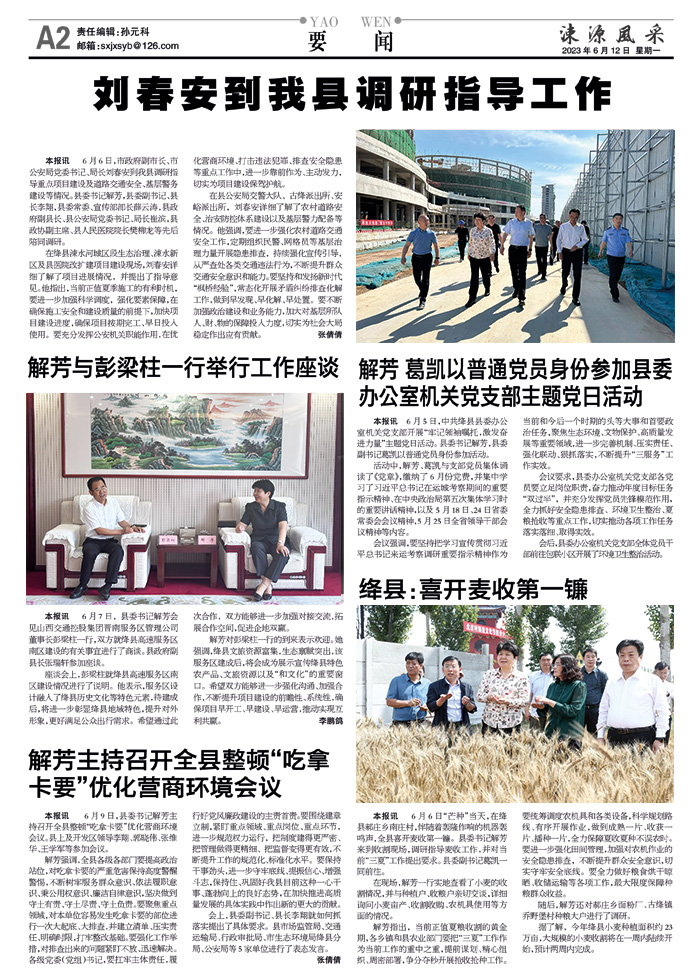 会议要求,县委办公室机关党支部各党员要立足岗位职责,奋力推动年度目标任务“双过半”,并充分发挥党员先锋模范作用,全力抓好安全隐患排查、环境卫生整治、夏粮抢收等重点工作,切实推动各项工作任务落实落细、取得实效。