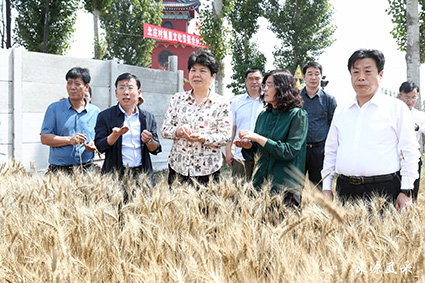 在现场,解芳一行实地查看了小麦的收割情况,并与种植户、收粮户亲切交谈,详细询问小麦亩产、收割收购、农机具使用等方面的情况。