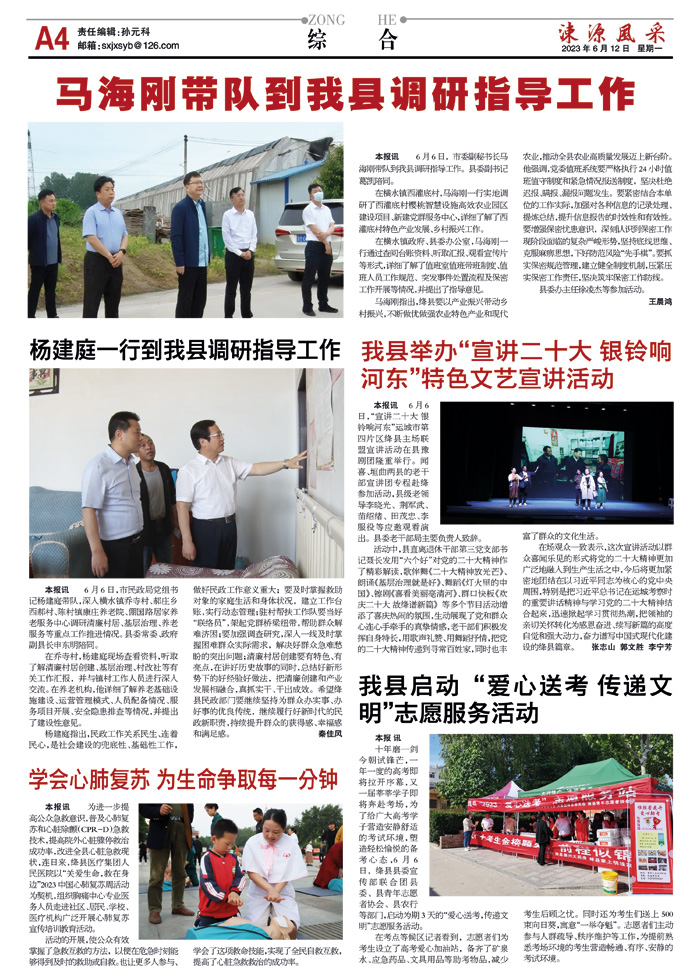 本报讯 6月6日,市委副秘书长马海刚带队到我县调研指导工作。县委副书记葛凯陪同。