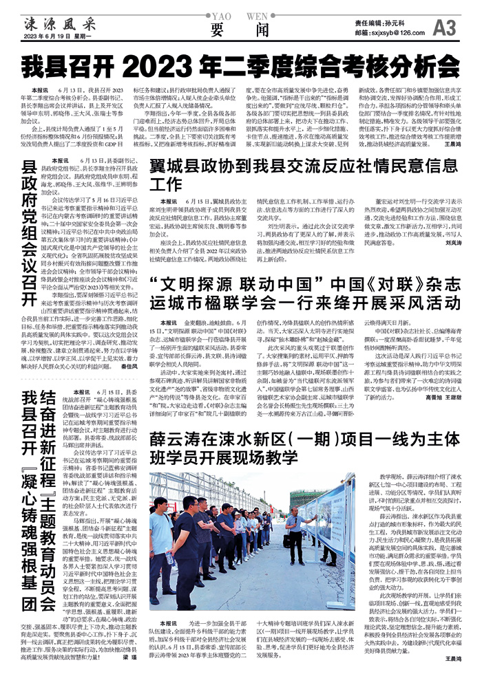 本报讯 6月13日,我县召开2023年第二季度综合考核分析会。县委副书记、县长李翔出席会议并讲话,县上及开发区领导申东明、郭晓伟、王大风、张瑞士等参加会议。