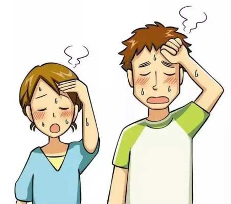 先兆中暑 在高温环境下,出现头痛、头晕、口渴、多汗、四肢无力发酸、注意力不集中、动作不协调等,体温正常或略有升高。
