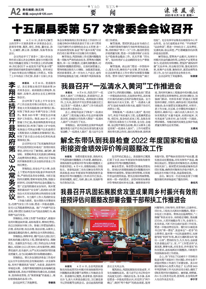 本报讯 8月10日,县委副书记、县长李翔主持召开县政府第29次常务会议。政府副县长郭晓伟、张瑞轩、张维华,政府办主任王辨明参加会议。