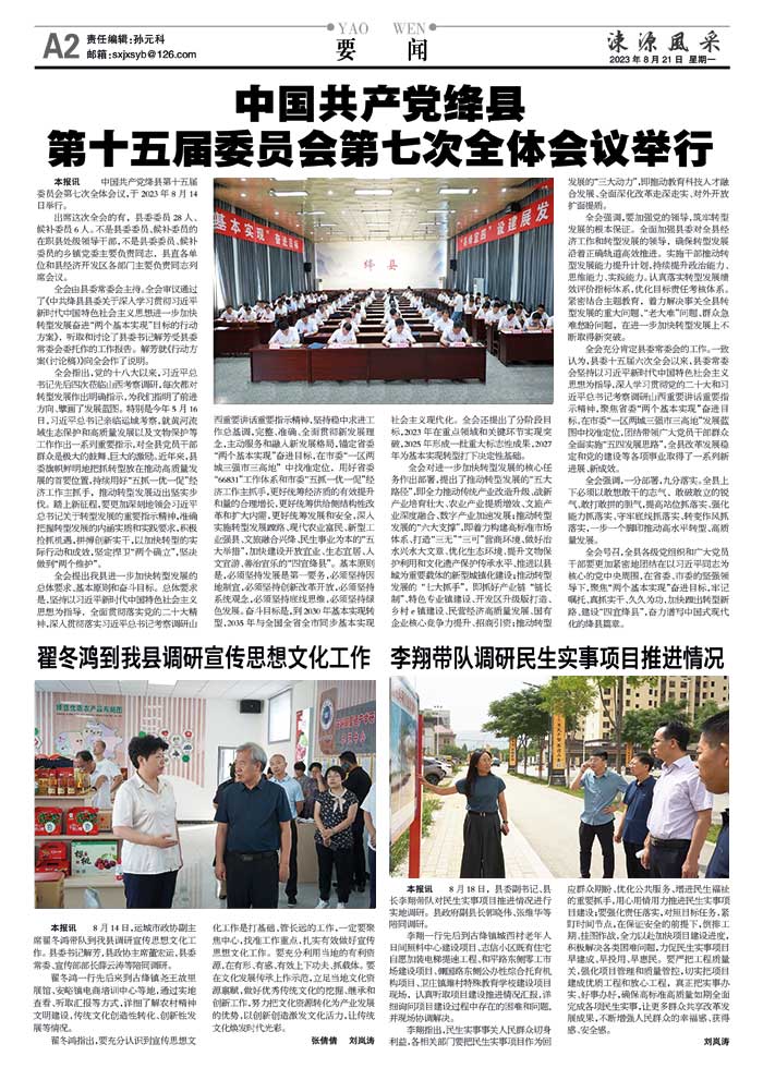 中国共产党绛县第十五届委员会第七次全体会议举行