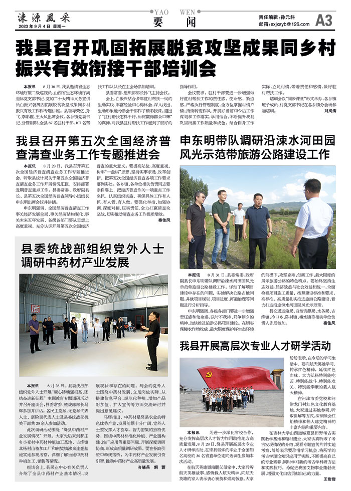 本报讯 8月30日,我县邀请省生态环境厅原二级巡视员、山西省生态环境厅离退休党支部书记、党的二十大精神义务宣讲员白振兴就巩固拓展脱贫攻坚成果同乡村振兴有效工作作专题讲座。县领导荣亿、孙飞、李彩霞、王大风出席会议。各乡镇党委书记、分管副职、全县87名驻村干部、107名帮扶工作队队长在主会场参加培训。