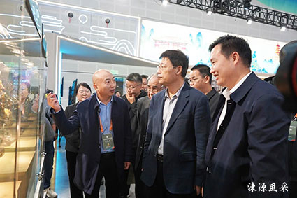 在位于文化产业综合馆A馆(S1馆)设立的运城展馆,由绛县瑞来石艺精心创作的“关公”“禄祥四方”“马上封侯”等金钱石雕作品,展示了当地独特的文创产品魅力,引来采购商及各界人士的驻足欣赏。王志峰详细了解展品的制作工艺、历史渊源等情况,充分肯定了绛县在文化产业、非遗传承方面所做的工作。他强调,要加强文旅产品研发力度,充分挖掘文化资源,提标升级、粘合市场,激发文化产业创新活力。