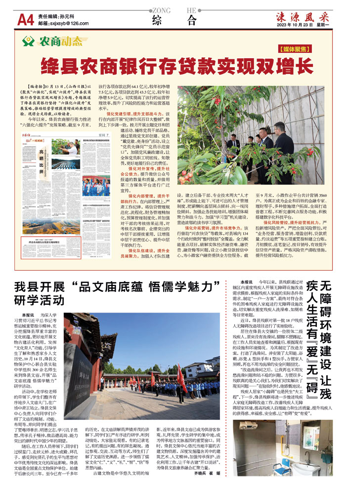 【编者按】10月13日,《山西日报》以《聚焦“六强化”,实现“六提升”,绛县农商银行存贷款实现双增长》为题,专题报道了绛县农商银行坚持“六强化六提升”发展策略,推动经营管理提质增效的典型经验。现将全文转载,以飨读者。