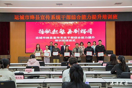 本报讯 10月28日,为期一周的全县宣传系统干部综合能力提升培训班圆满结业。县委常委、宣传部部长薛云涛出席结业仪式并讲话,山西传媒学院教授、硕士生导师温建梅等出席活动。