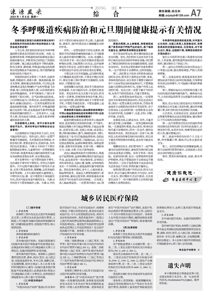 冬季呼吸道疾病防治和元旦期间健康提示有关情况
