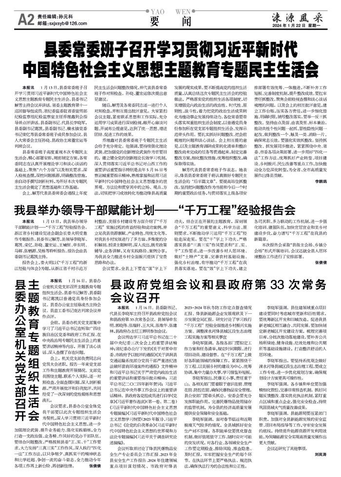 县委常委班子召开学习贯彻习近平新时代中国特色社会主义思想主题教育专题民主生活会