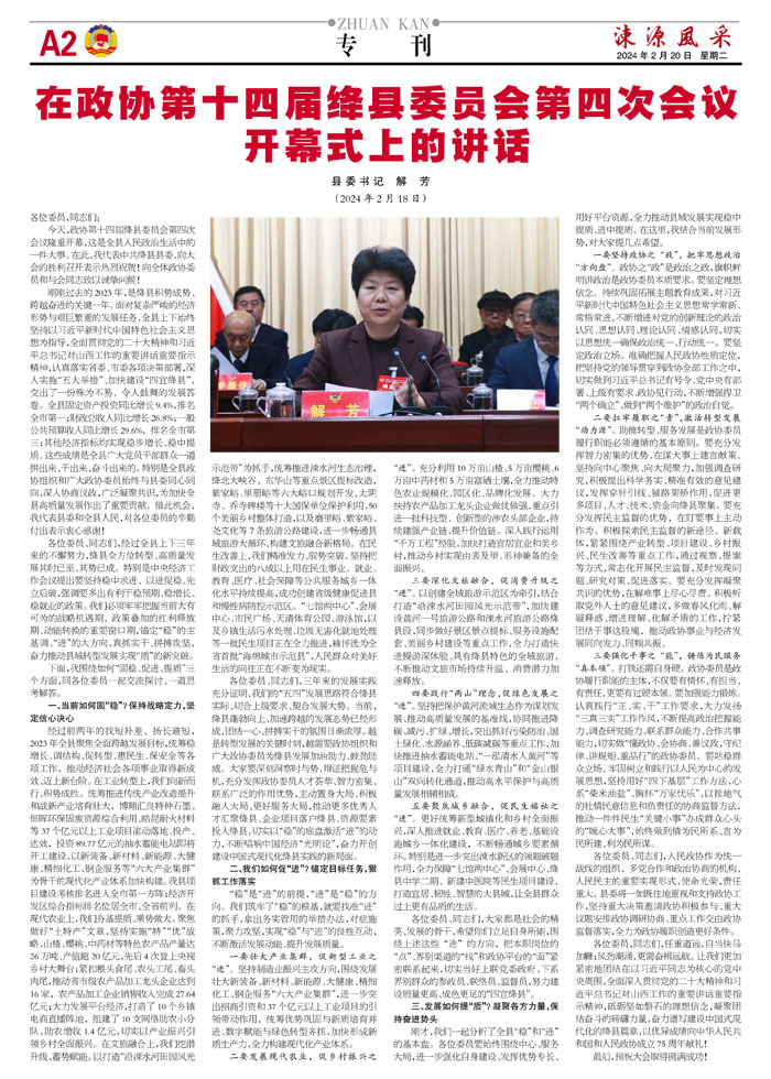 在政协第十四届绛县委员会第四次会议开幕式上的讲话