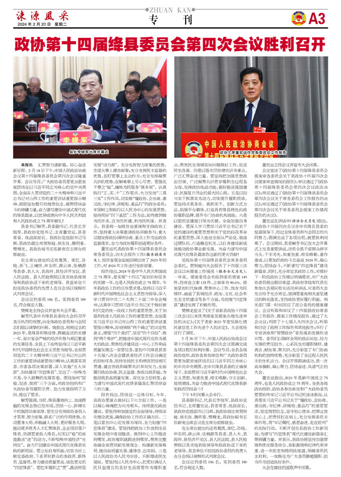 政协第十四届绛县委员会第四次会议胜利召开