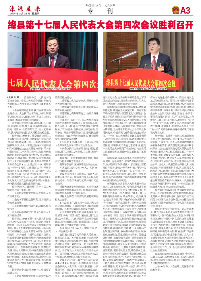 绛县第十七届人民代表大会第四次会议胜利召开