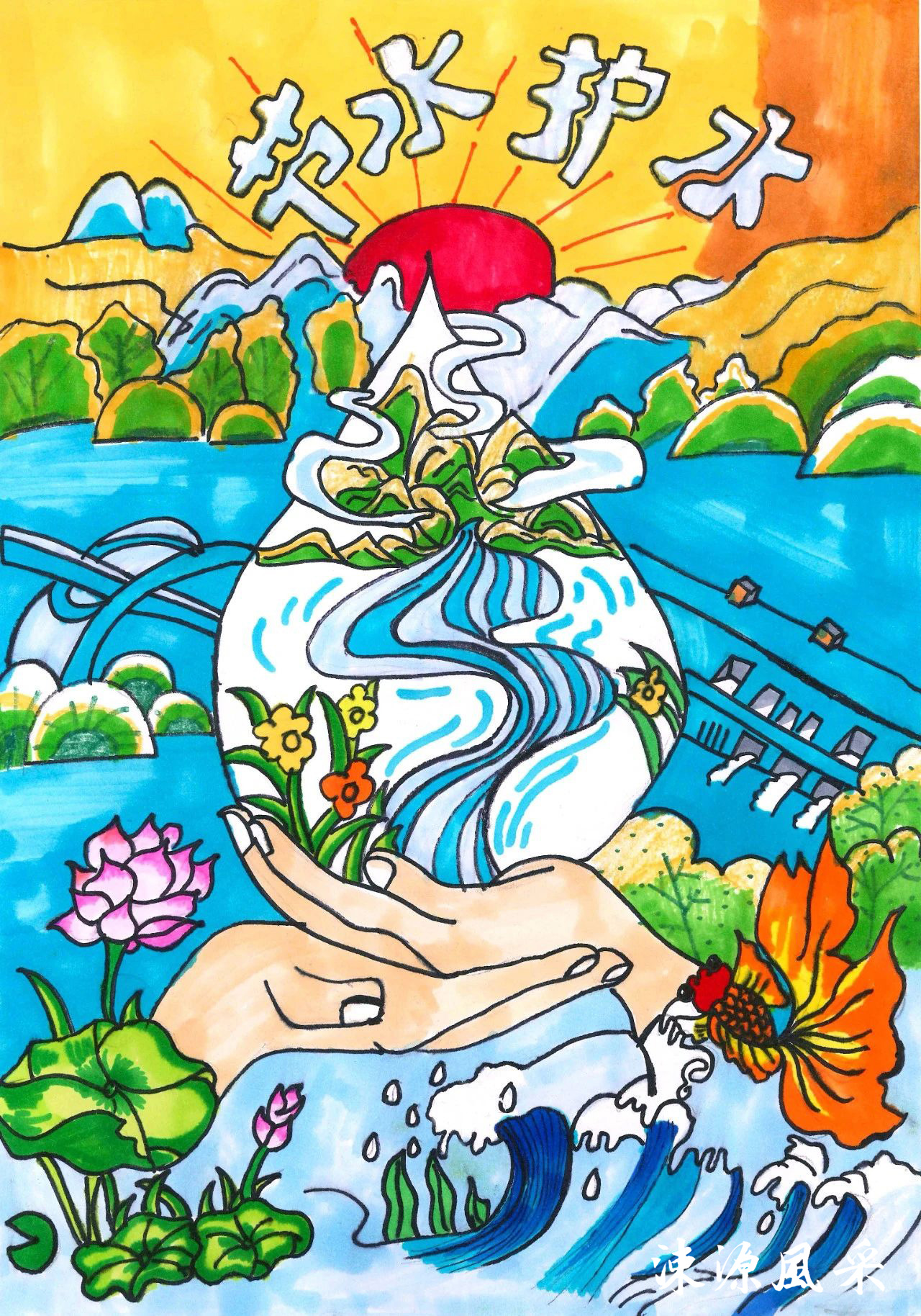 绛县小学生郭奇佳美术作品《节水环保绿色中国》亮相太空