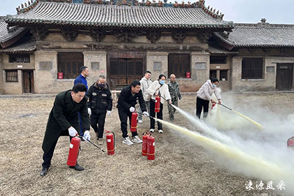 本报讯 为切实做好文物保护单位消防安全管理工作,不断提高文物保护相关人员的责任意识和业务水平,坚决预防和遏制文物古建筑火灾事故的发生。3月4日,绛县文物保护中心全体人员在国保单位南柳泰山庙组织开展消防安全演练。